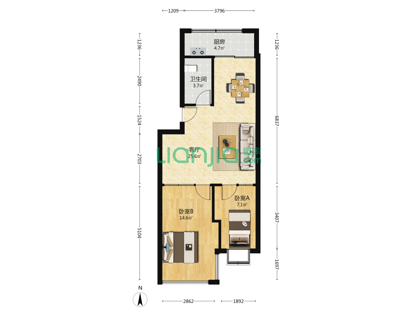 福利莱万和城,2室1厅1卫 74㎡
