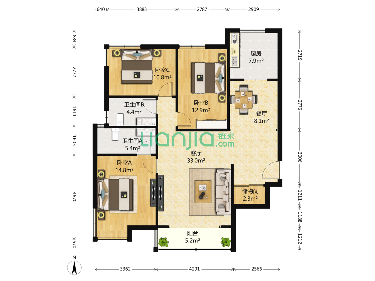 3室2厅2卫 157㎡