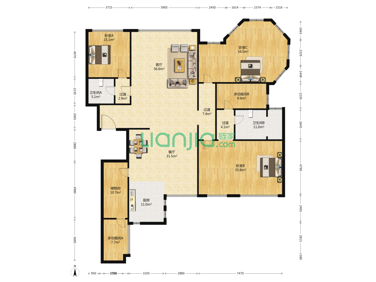 南山世纪华府,4室2厅2卫 261㎡