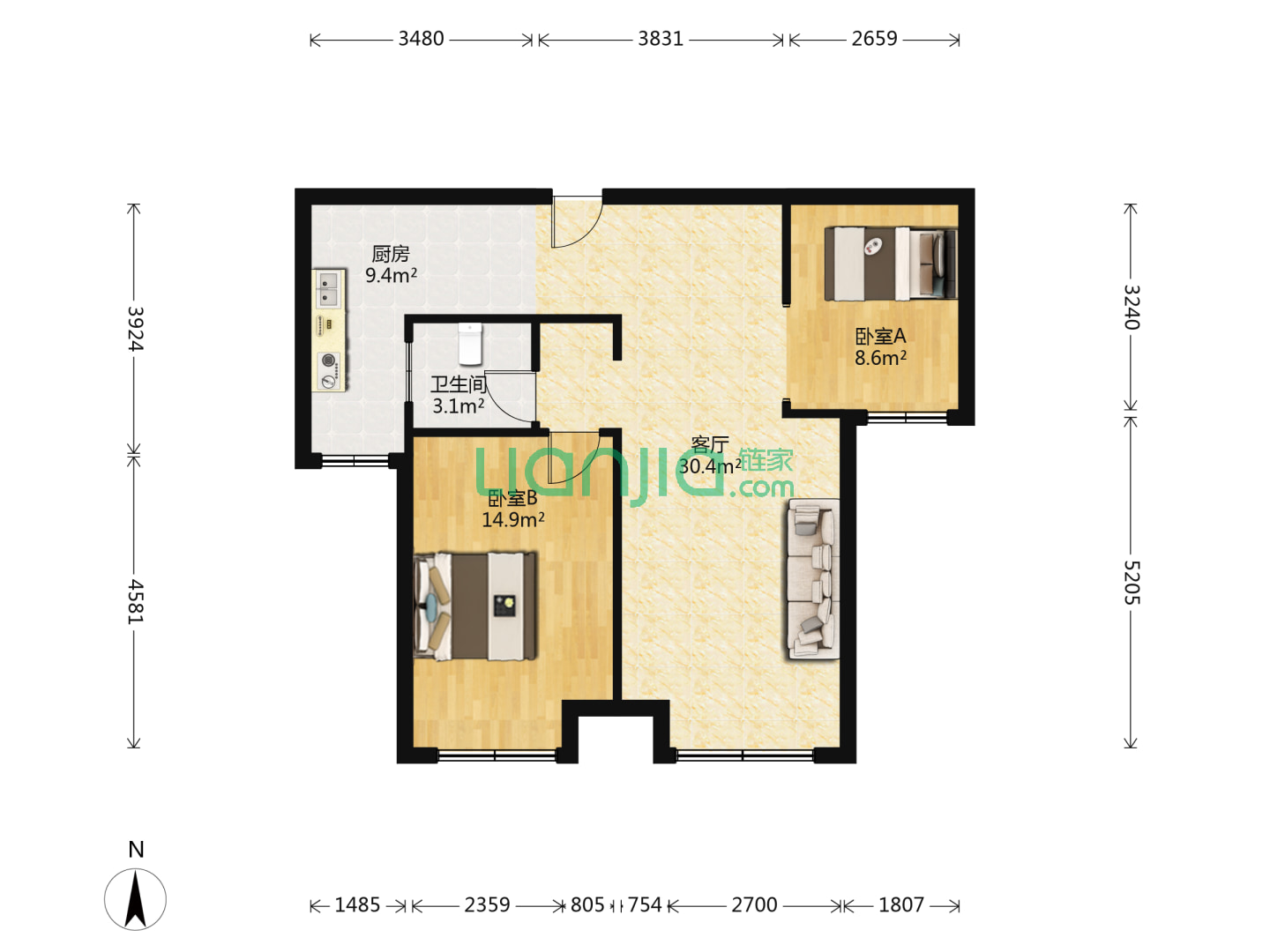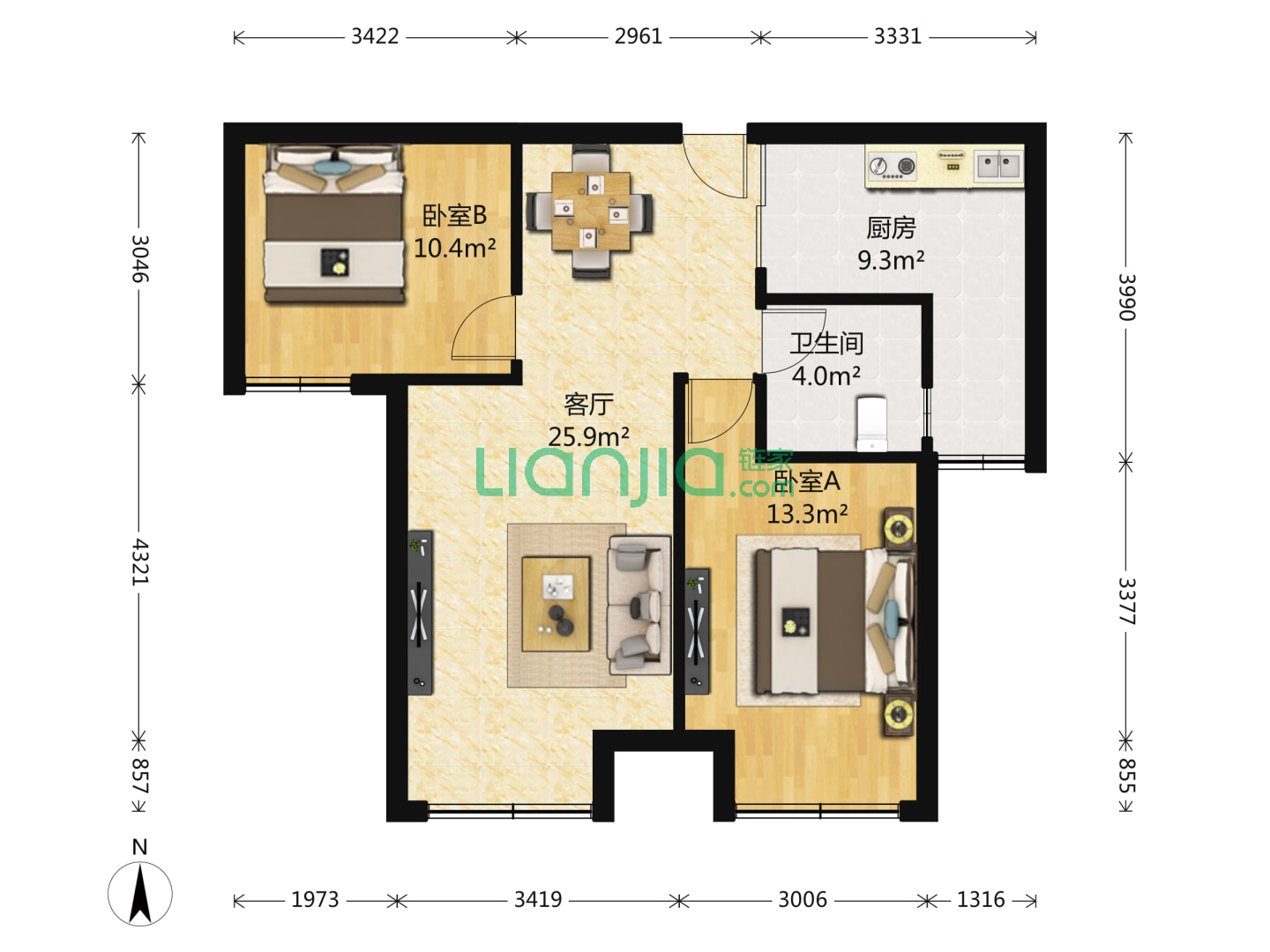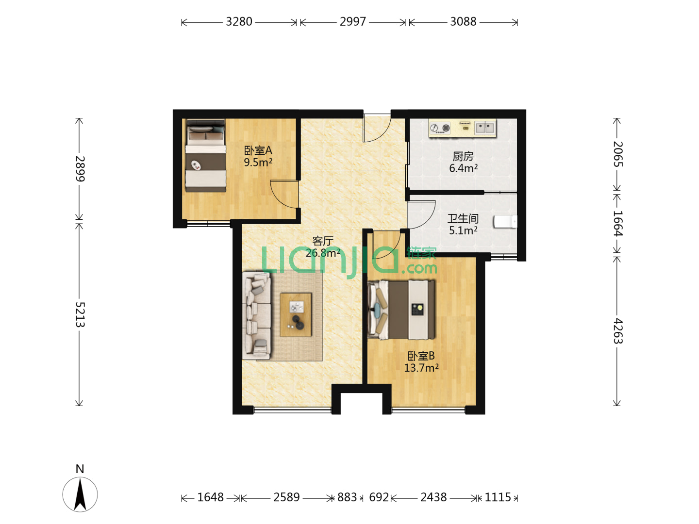 2室2厅2卫 97㎡