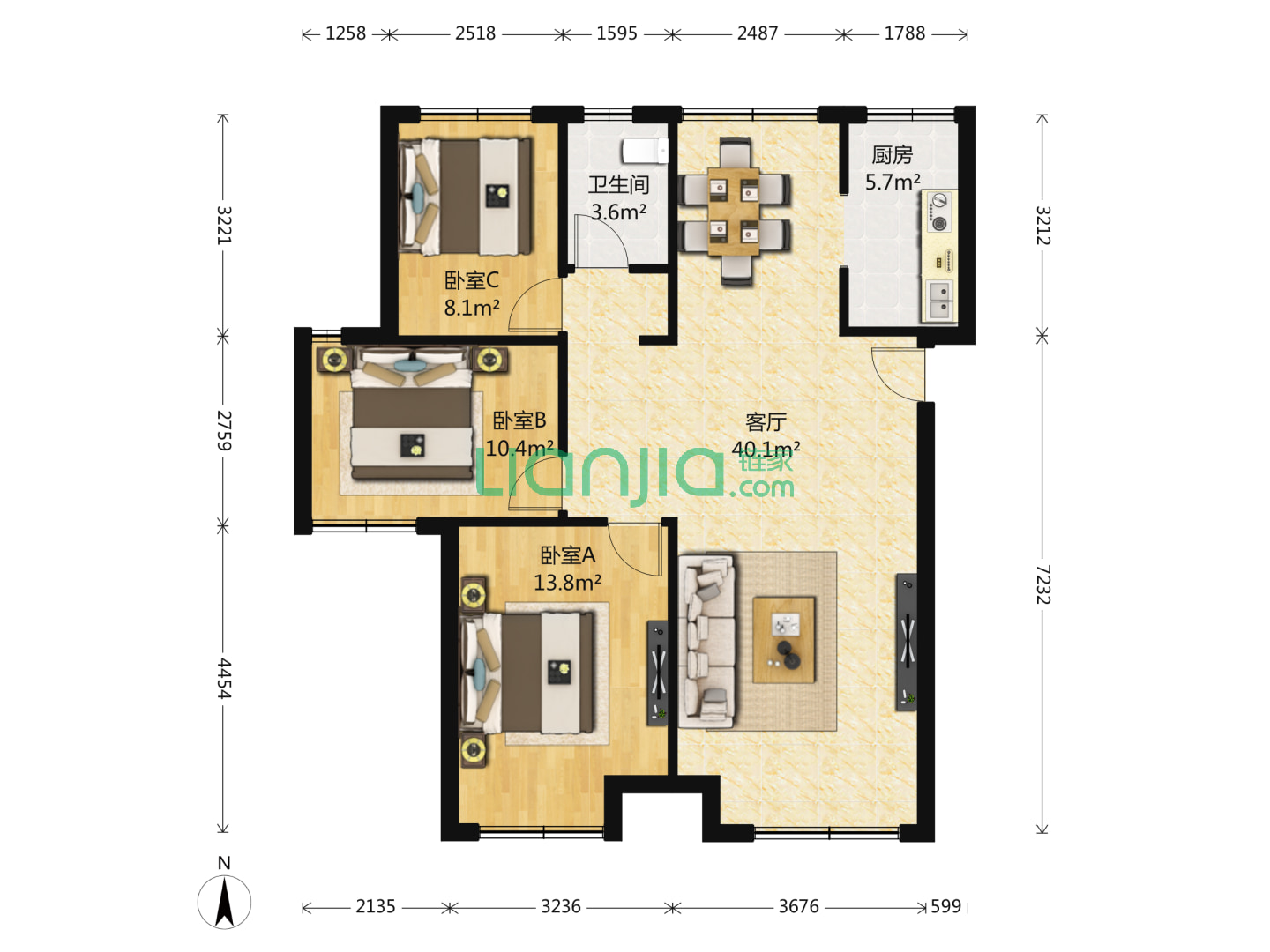 3室1厅1卫 109㎡