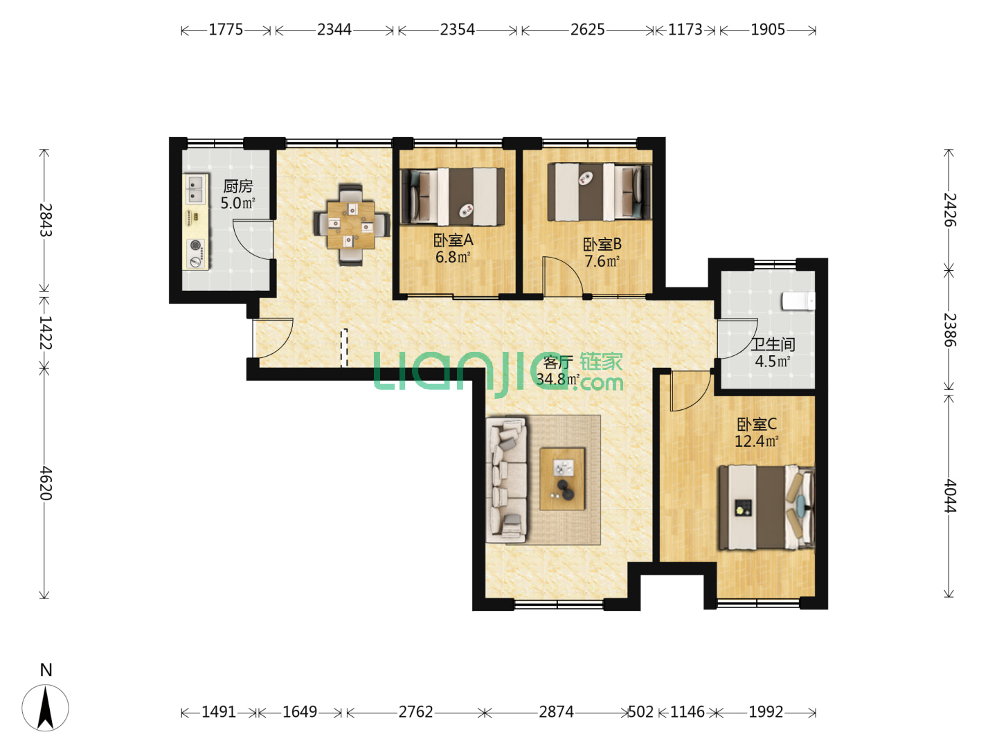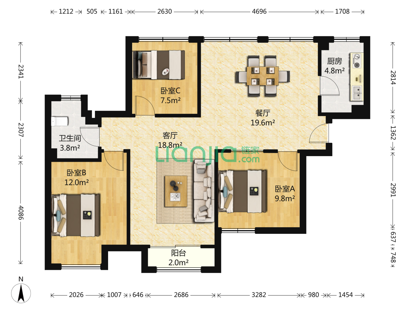 3室2厅2卫 122㎡