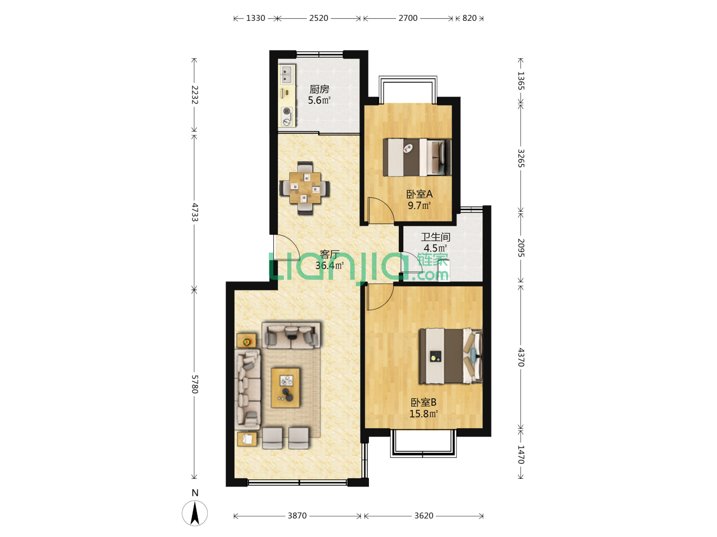 2室1厅1卫 88㎡